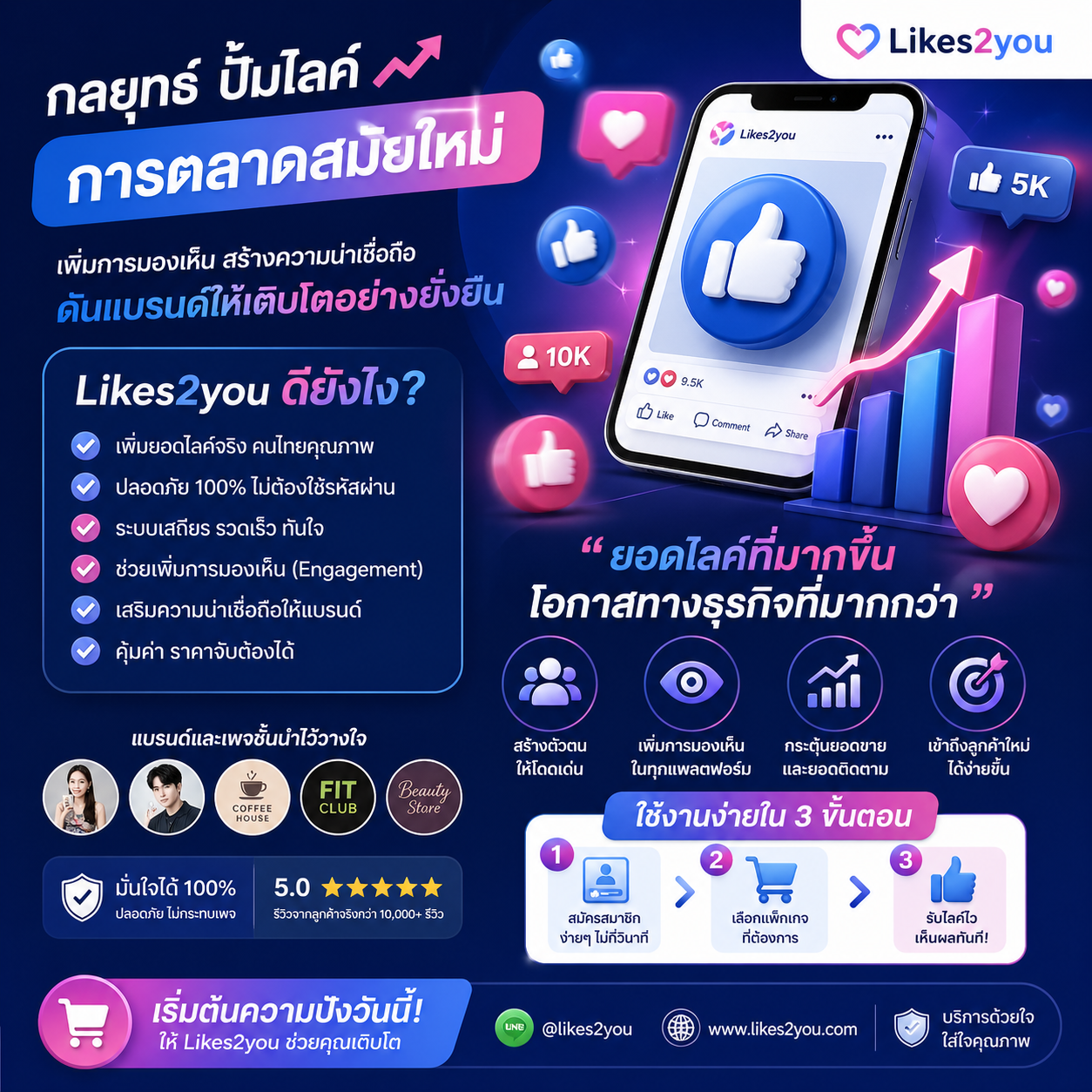 ลองจินตนาการว่าคุณเจอโฆษณาสินค้าชิ้นเดียวกัน ร้านแรกมีคนไลค์ 5 คน กับร้านที่สองมีคนไลค์ 5,000 คน แน่นอนว่าร้านที่สองย่อมปิดการขายได้ง่ายกว่า เพราะมียอดไลค์เป็นตัวการันตีความนิยม